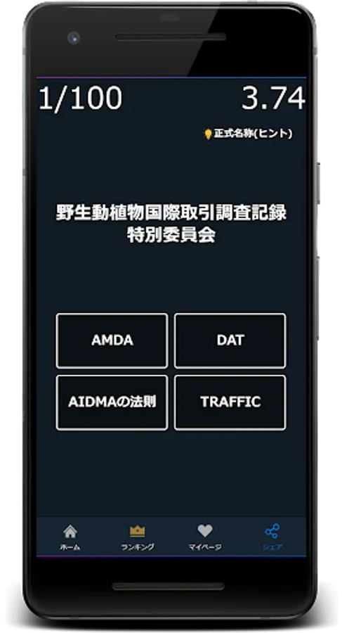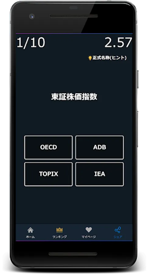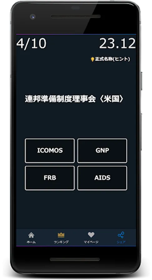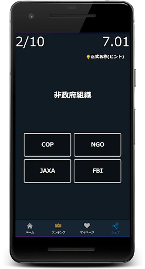 In the English abbreviation quiz game app, the official Japanese name is given as a question. it is possible to see
