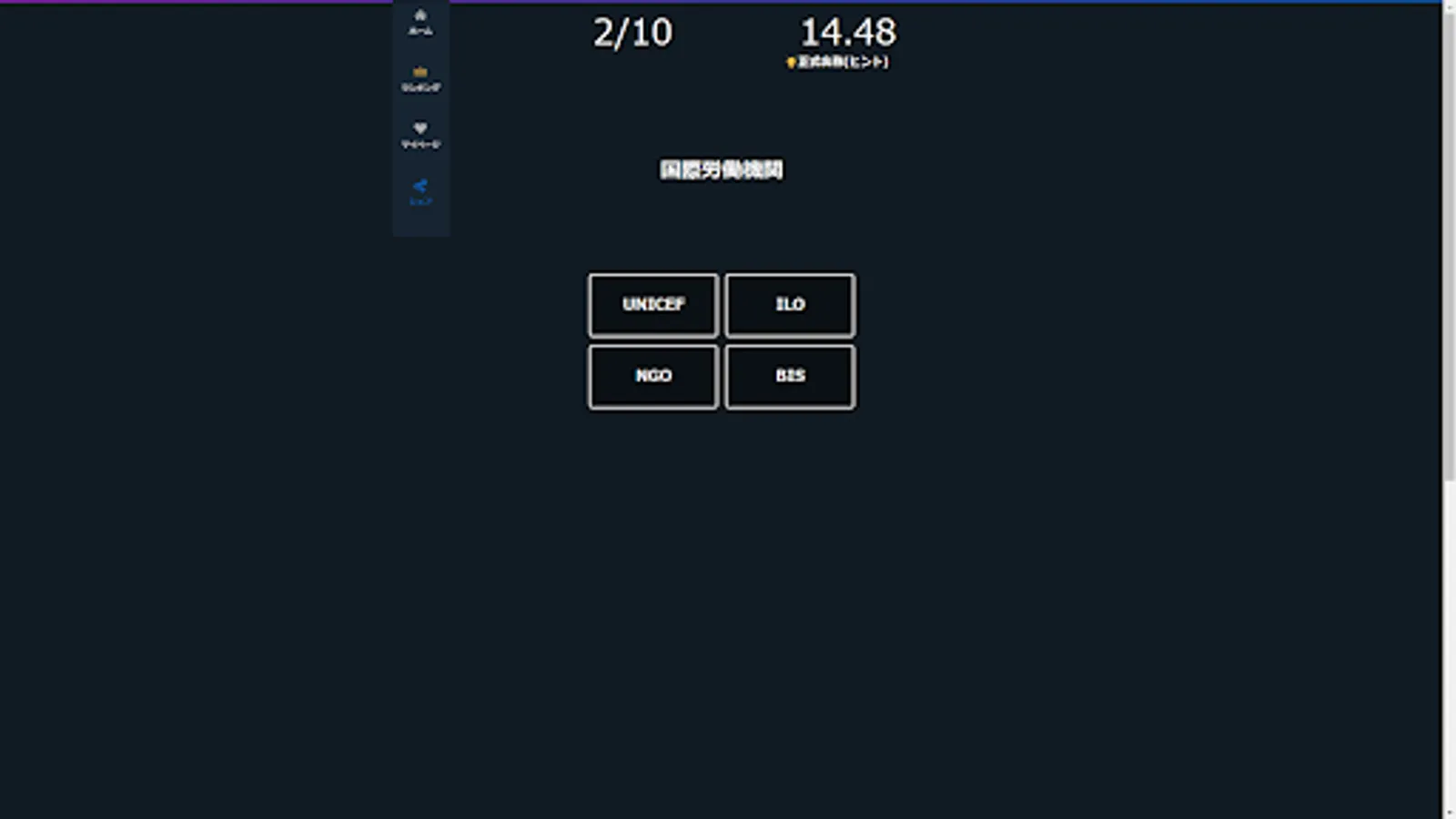 Since the number of correct answers and clear time are also displayed, it can be used as a learning record for abbreviations, so we hope you can use it to learn difficult abbreviations.