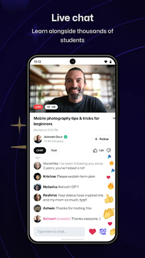 💬 Live chat - Learn and collaborate with thousands of students in real-time.