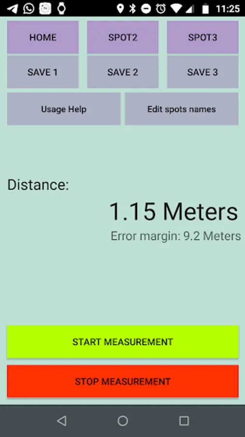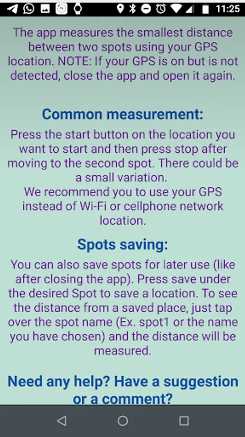 The app measures the distance between two points as a straight line using the coordinates. It may not be accurate for indoor use or small distances of a few meters.