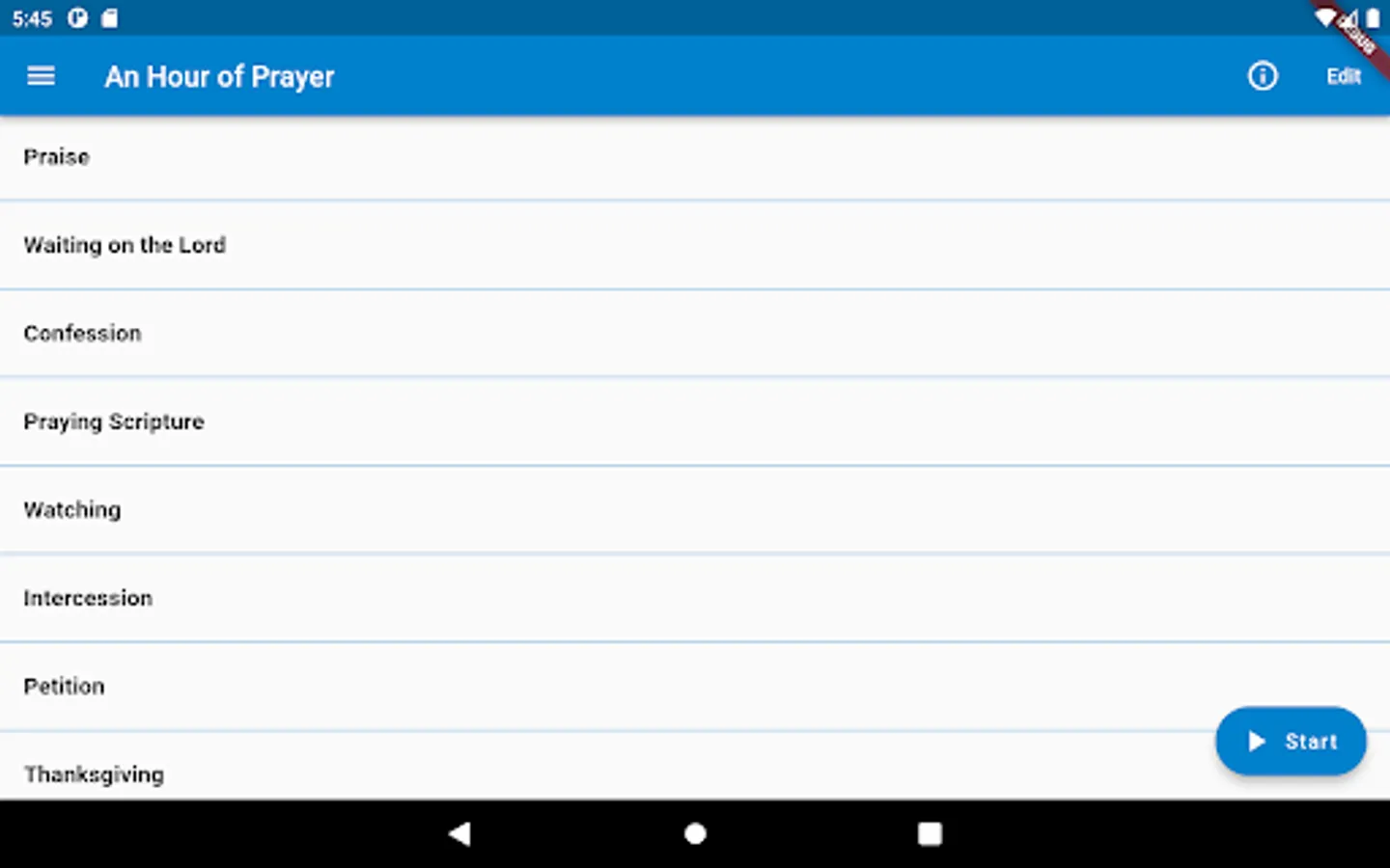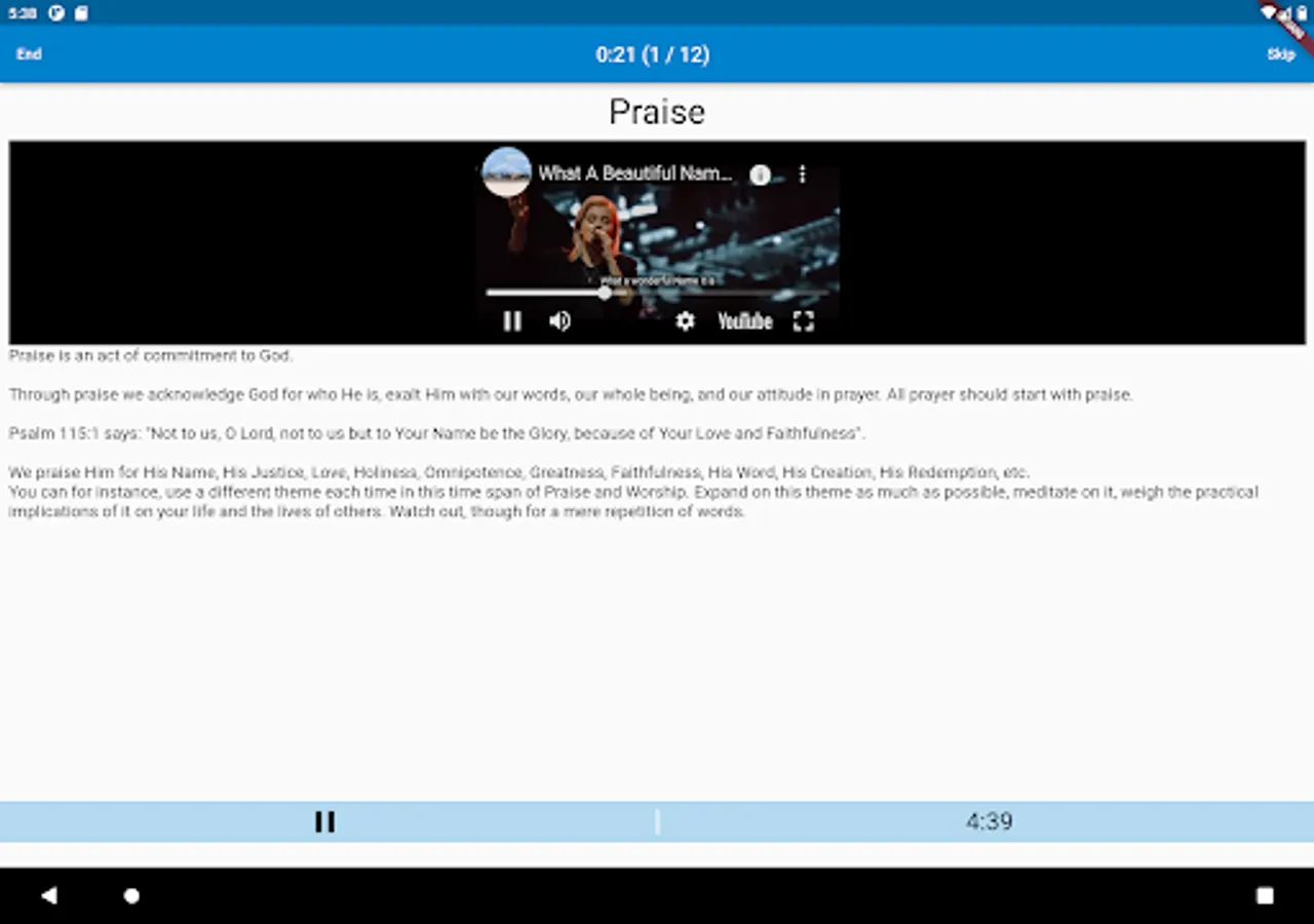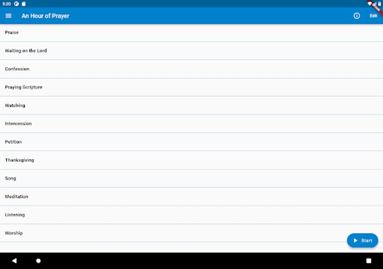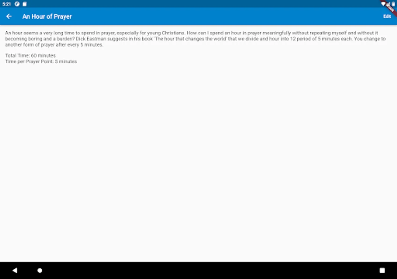 Time2Pray is a Prayer Timer that allows you to split a prayer time into sections and have the app help section out the prayer by topic.