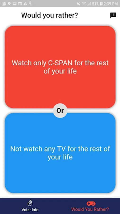 We've added a 'Would You Rather' game too to encourage people to engage with politics in a fun yet thoughtful way.