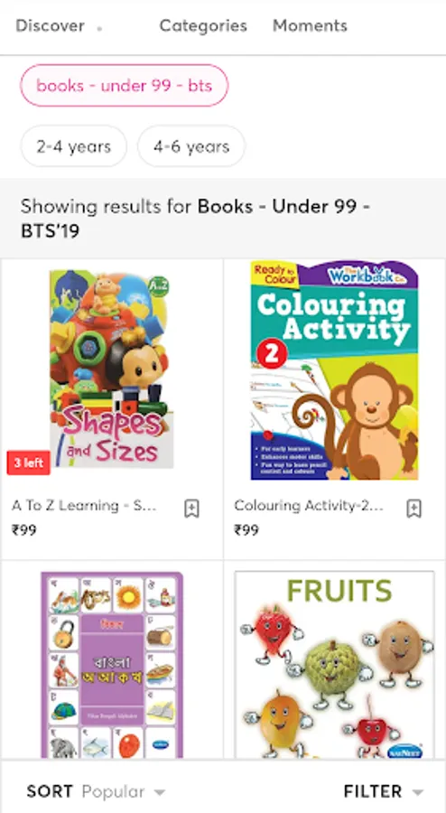 Get Books for Kids under Rupees 99 only. Get Books, T-Shirts, Dresses, Sleeve Floral Applique, Shoes, LED Sneakers, Slip Ons, Slip on Shoes, pastels, coats, Hoodies, Jackets, Outfits, Footwear, Sets and Onesies, Partwear, Sleepwear, Tops, Accessories, Sets, Footwear, Tops and Bottoms, Fashion, Basics, Footwear, Snuggly Hoodies, Jackets and coats, Sweaters and Sweatshirts for our kids only on this App. Download the App now and Happy Shopping