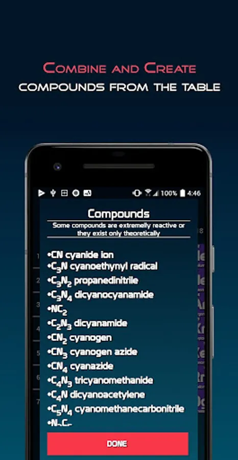 -Ability to select elements from the periodic table or polyatomic ions table to combine them to create a new chemical compounds. The program has integrated stoichiometry calculator that will perform element combination automatically.
