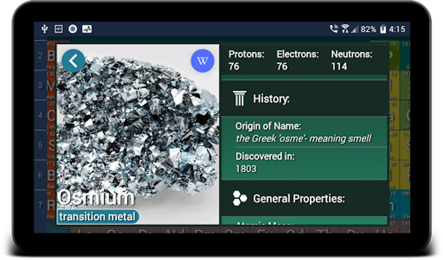 -Detailed information about each element on the periodic table with high quality images and direct link to the their wikipedia page
