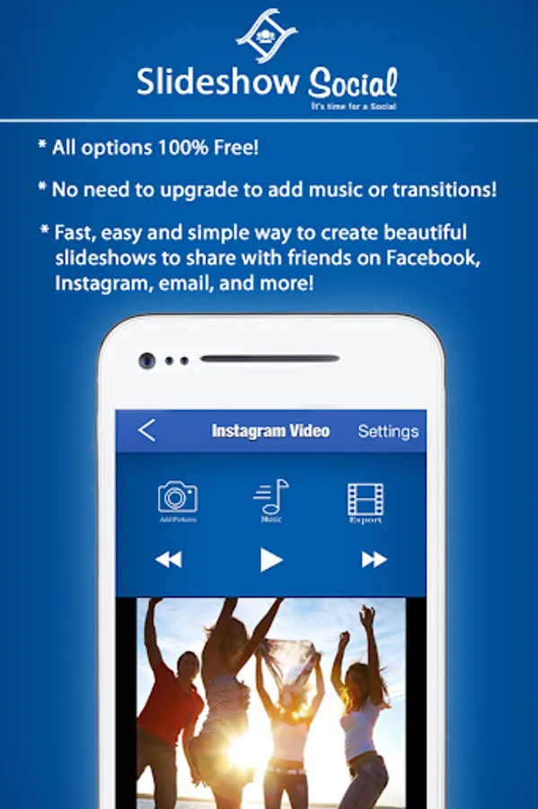 Create amazing fun free videos by adding your favorite photos and customize them with special effects, transitions, and text messages. Add in your favorite music and you're all set! Just a click away from sending out a beautiful slideshow to all your family and friends to see!