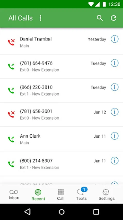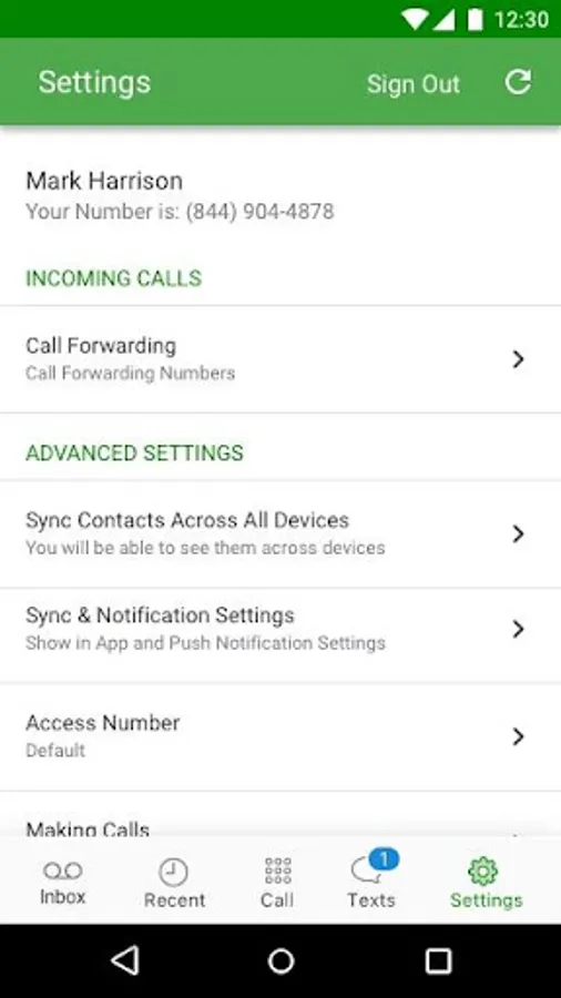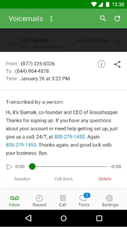 * Place calls and send texts* that show your Grasshopper number (requires working phone service on your Android and data access)