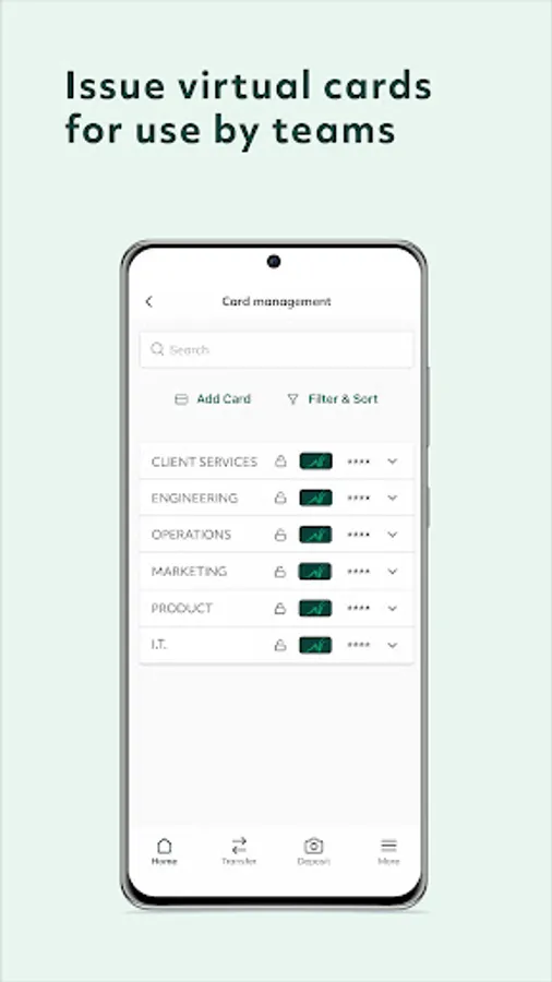 - View and manage all cards issued across your entire organization, including transaction limitations and merchant category restrictions