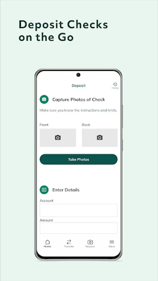 - Deposit a check in seconds by taking a photo - unlimited check deposits & no additional charge