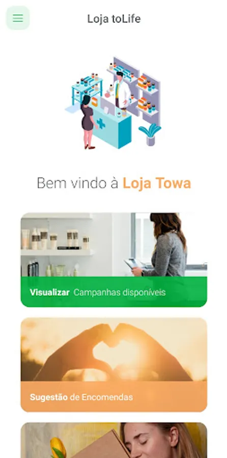 The application for Towa customers where it will be possible to access and view the monthly and quarterly data of their pharmacies, compare the top and bottom of products sold and make purchases from campaigns.