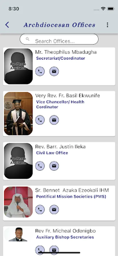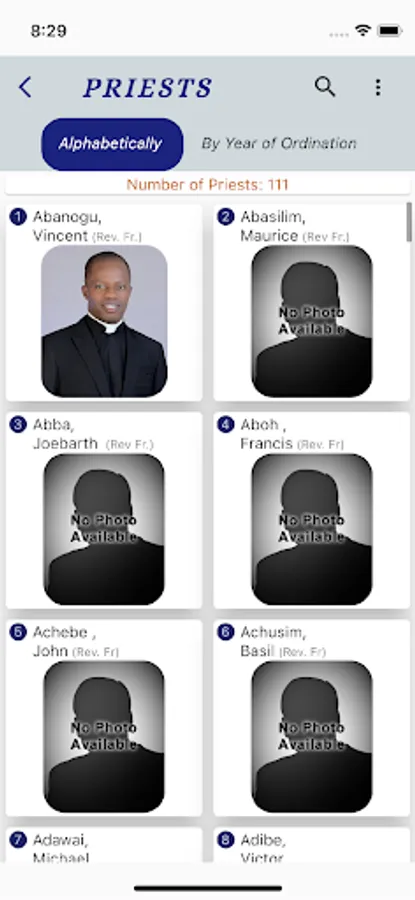 Names/contacts/places of apostolate etc. of Parishes in Catholic Archdiocese of Onitsha. Names/contacts/places of apostolate etc. of Incardinated Priests in Catholic Archdiocese of Onitsha. Schools in the Archdiocese, Archdiocesan Offices and much more. Any inquiry about the Archdiocese is seen in the app. It's a real-time app with immediate data update from the database.