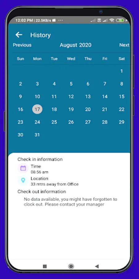 - False attendance marked can be recognized (if any employee change any details on their phone while marking their attendance, it is automatically detected by admin)