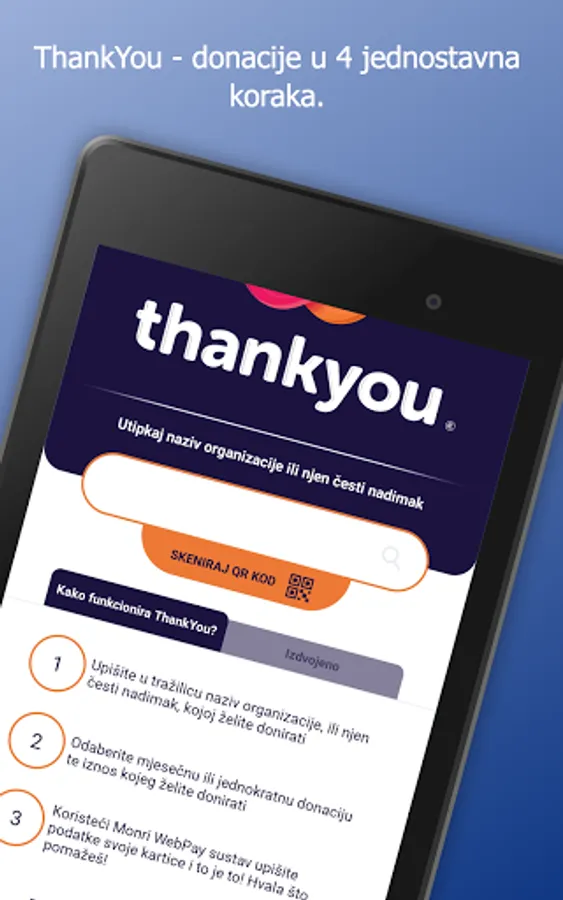 ThankYou application is for Croatian humanitarian and to all people of good will who want to donate to selected nonprofit humanitarian organizations and charities.