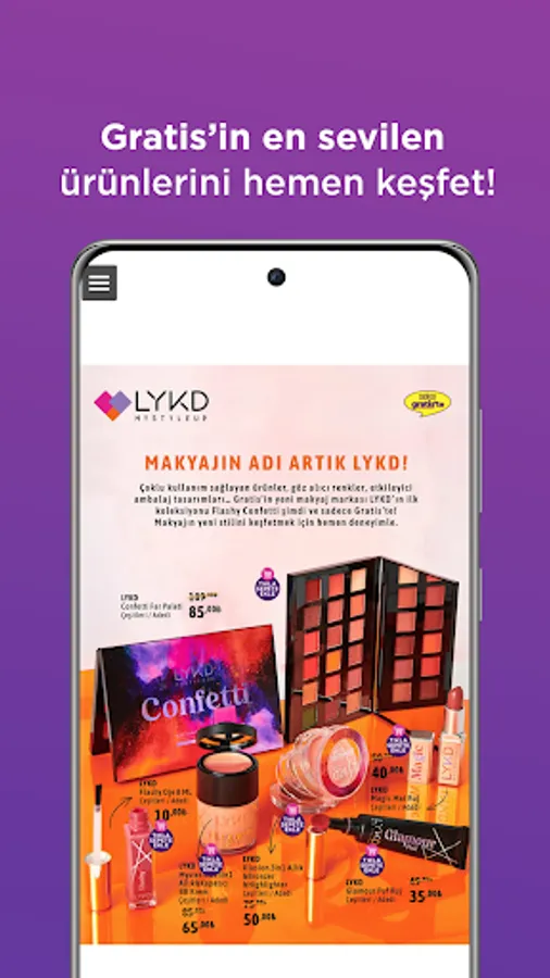 Gratis application classifies products in different categories such as eye, face, lips, nails, make-up palettes, make-up sets, make-up brushes and accessories and make-up removal products so that you can easily access the make-up products you are looking for. There are options such as filtering different features such as price range, product form, color tone, price and points so that you can easily access the products you need. You can look at the types of eyeshadow palette for fascinating eyelashes, foundation that best suits your skin or creative eye makeup, all the products you need from nail polish to make-up base are here.
