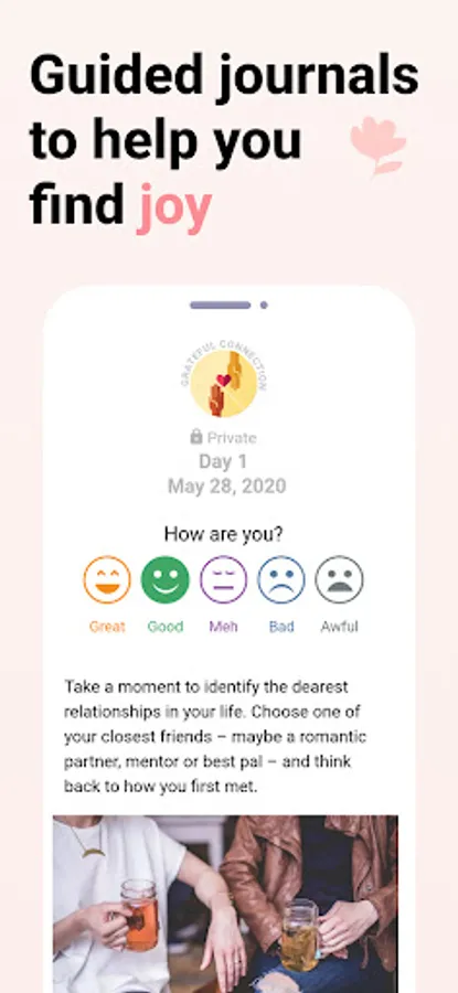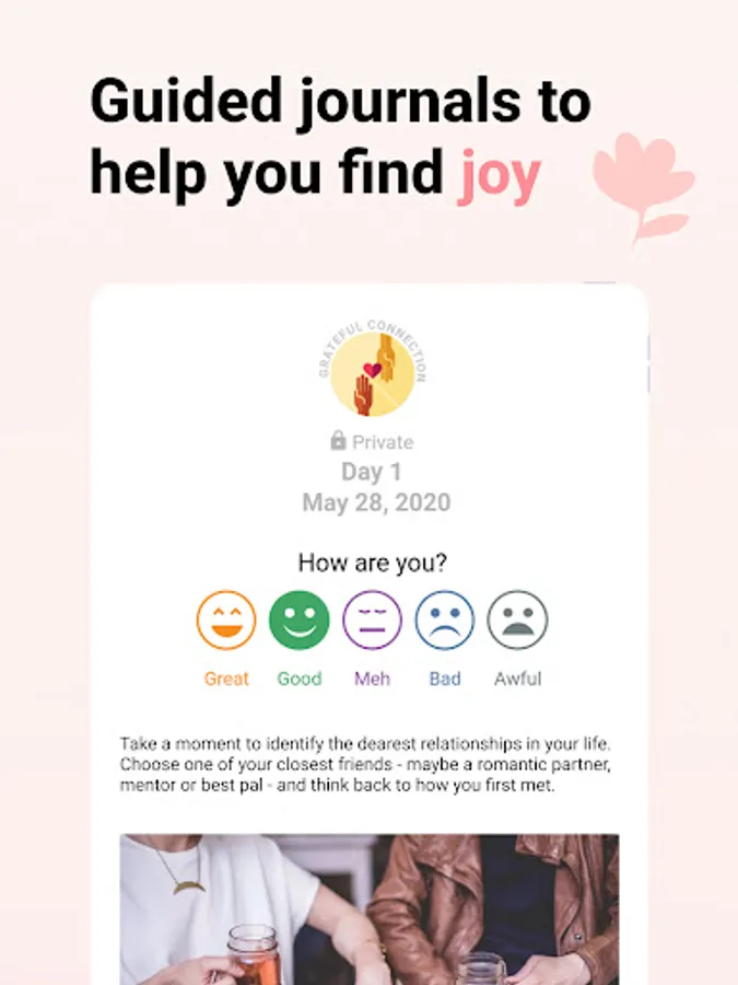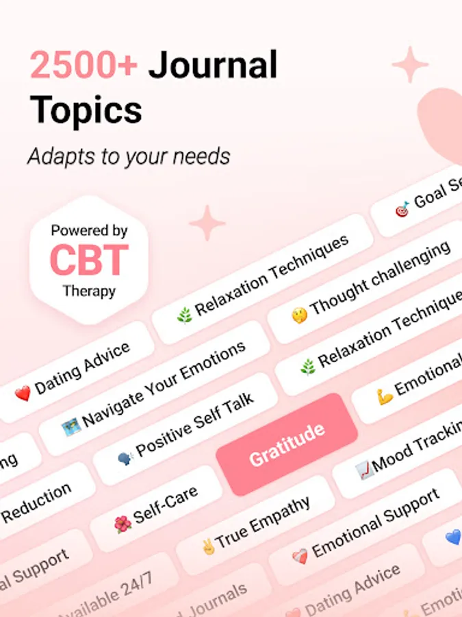 365 Gratitude Journal is a happiness coach. Our self growth AI will guide you with interactive CBT Therapy and mindfulness exercises for stress and anxiety relief and improve your relationships and mood.