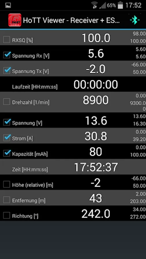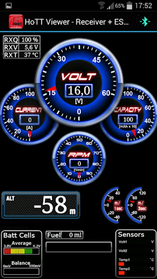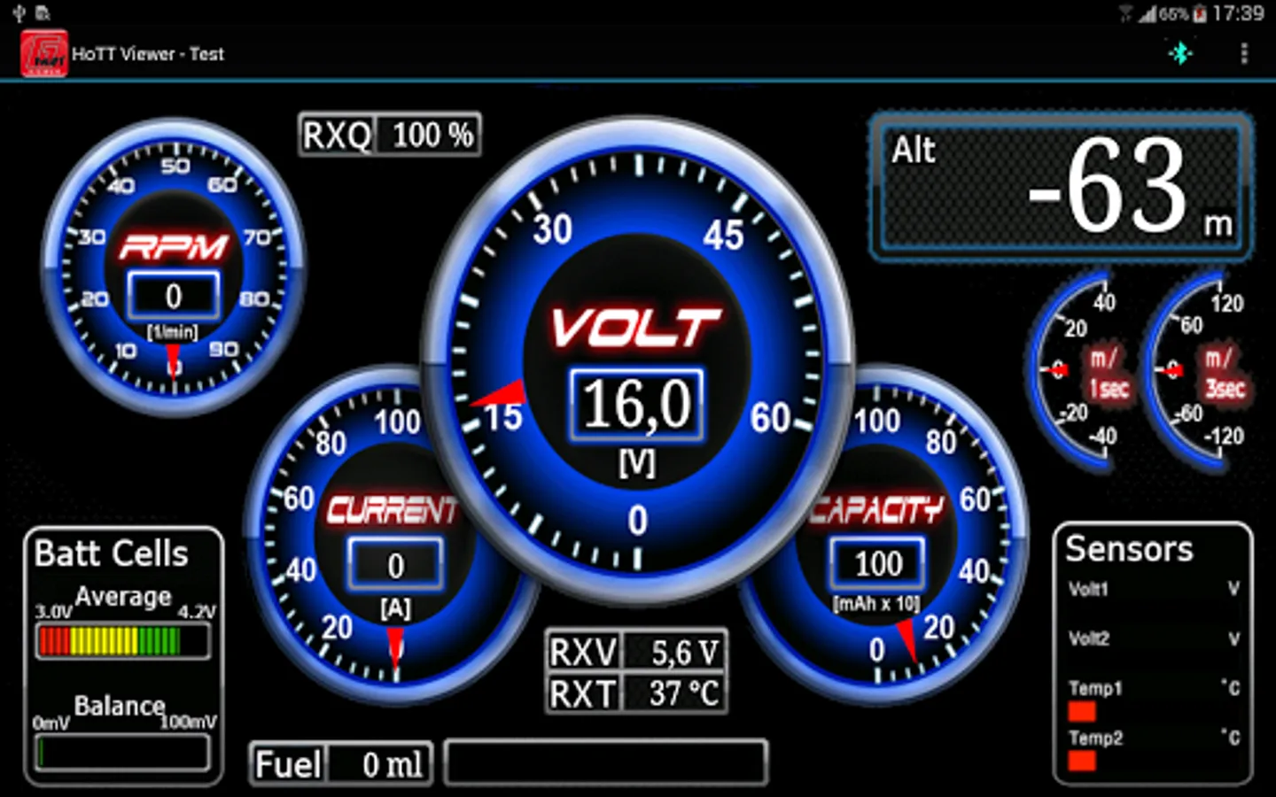 Graupner HoTT Viewer enables you to have the telemetry data displayed on your smartphone as well as have them spoken out. This includes sensors attached to your receiver. The voice output can be configured to repeat in custom intervals. You can also set custom thresholds to trigger a message. By creating various “configurations” you can create views specific to any of your models.