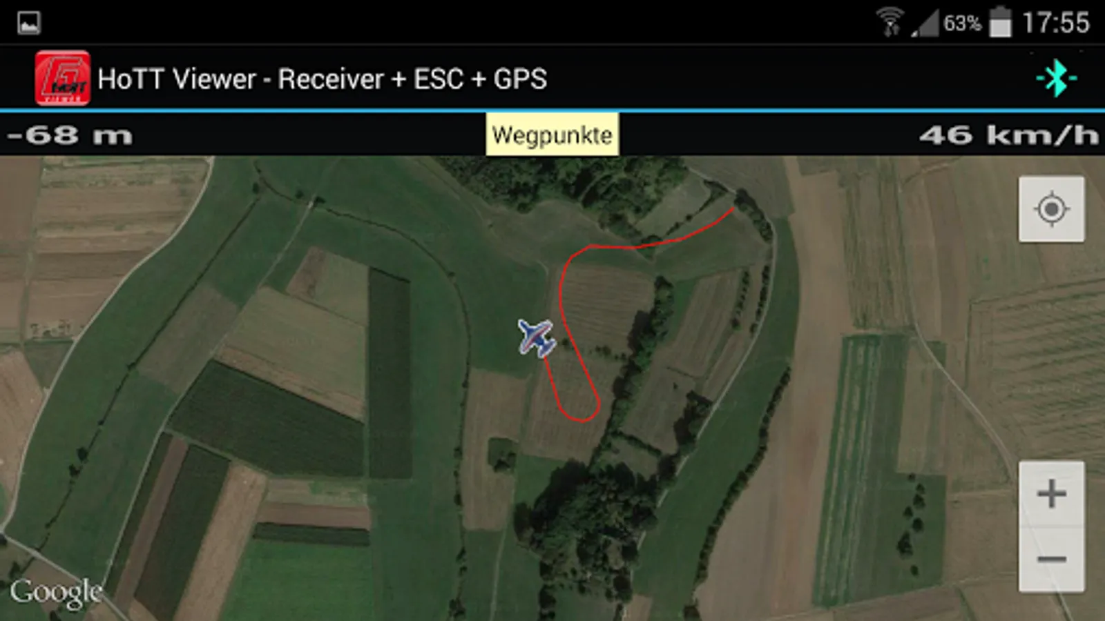 As a matter of course you can follow your models GPS-coordinates on Google Maps™. In case of a lost signal the last transmitted coordinates are saved and the software will guide you to your model by direction and distance (which usually works better than a mapview).