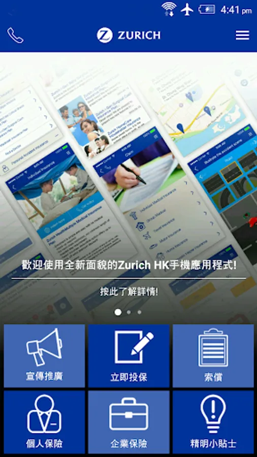 “Zurich HK” places the services and information you need at your fingertips: from instant purchase of insurance to claims submission to smart tips for emergencies, all are readily available through this app.