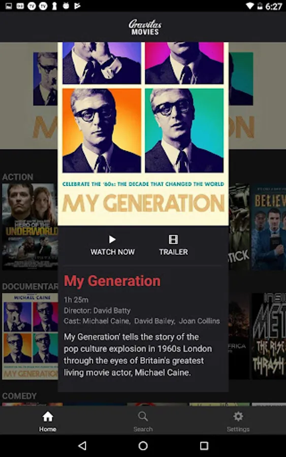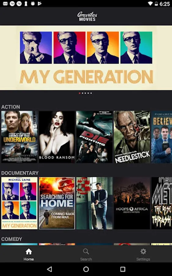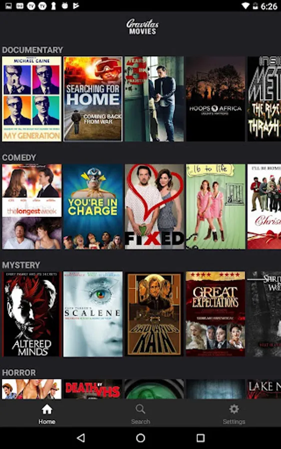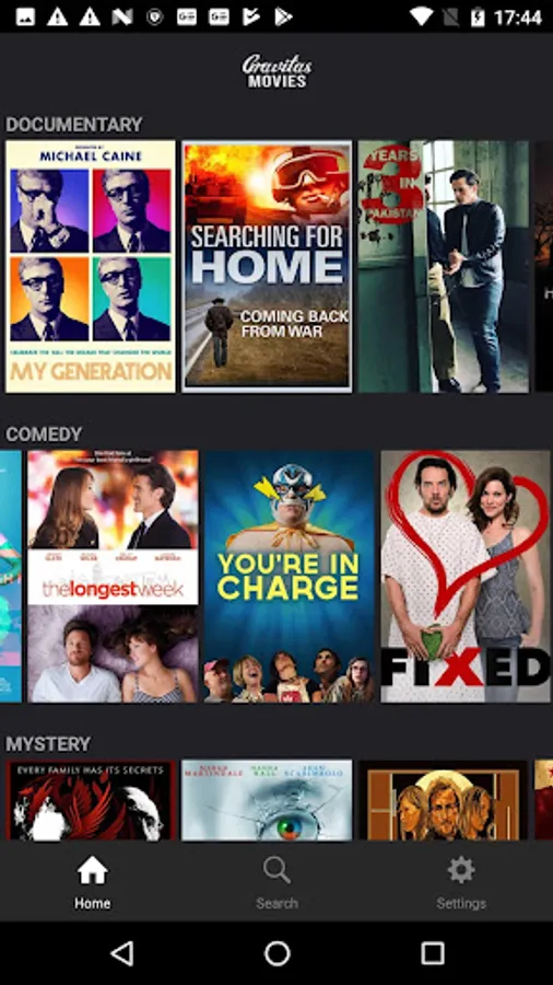 Gravitas Movies contains older film quality content that will result in a pillar box effect on some films.