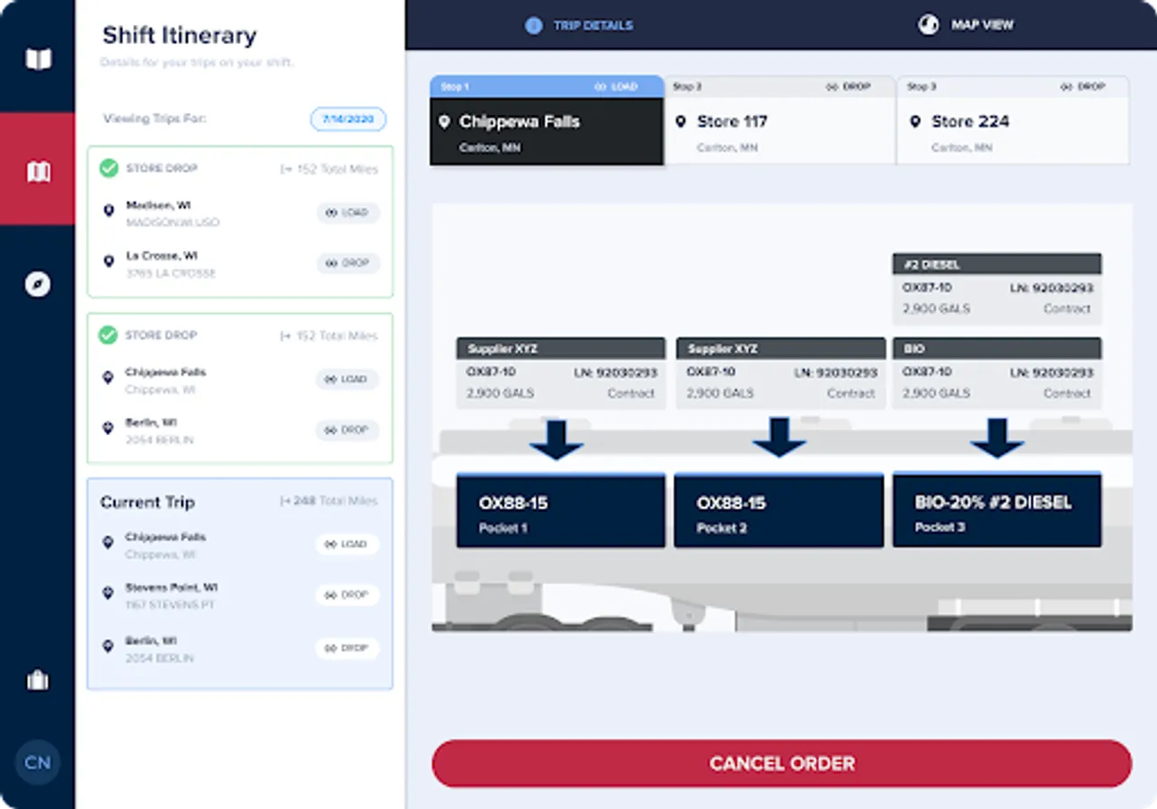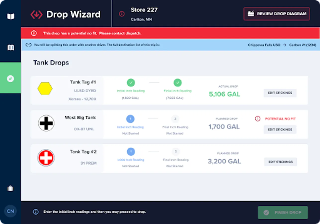 - View complete order details: whether products,suppliers, or tanks to drop in.