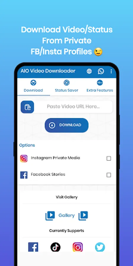 All In One Video Downloader Helps You to Download Videos/Status from Any Social Network Website. This Powerful Tool Support More Than 105 Websites.