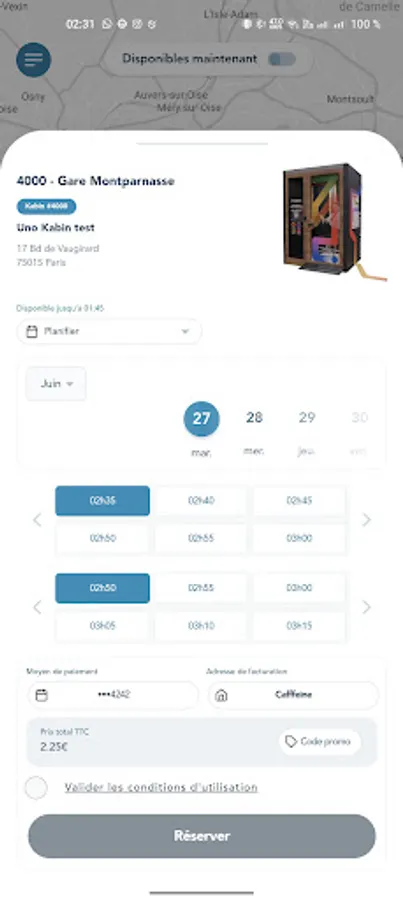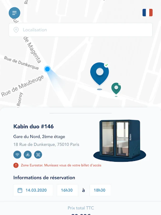 KABIN deploys workspaces, real comfortable and secure bubbles of confidentiality, geo-located and accessible in self-service thanks to this application.