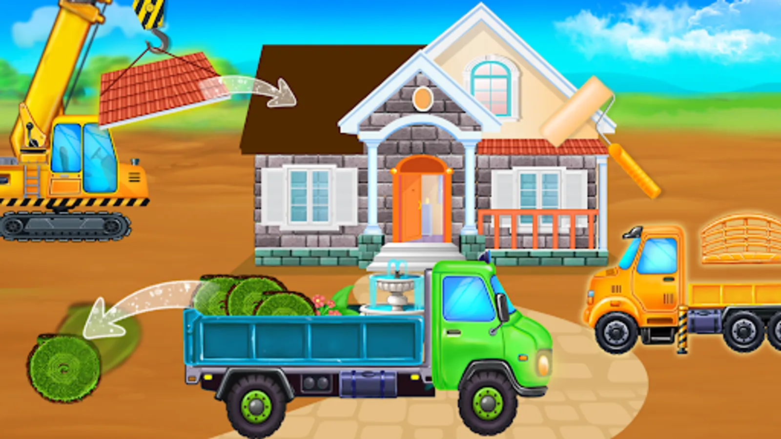 Have you ever wondered how a house is built? Well, wonder no more! Build a House Game allows you to learn how to build a house from scratch. This construction game is perfect for anyone who loves to learn new things and enjoys playing with trucks.