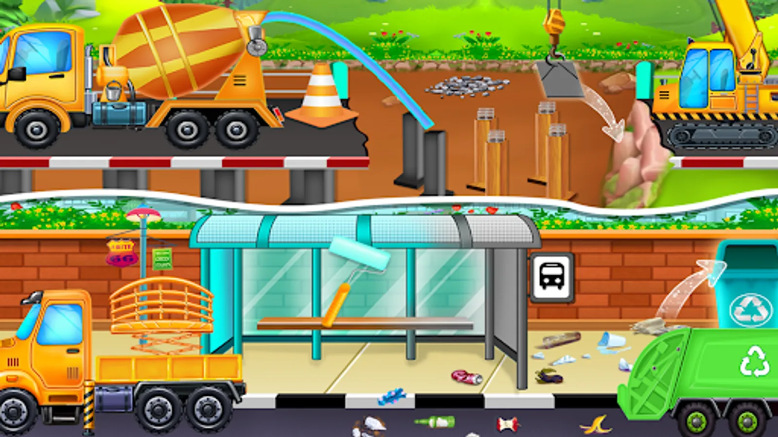 If you love different types of vehicles like trucks, cranes, tractors,JCB and all other trucks which are used in construction then you will definitely like this game.