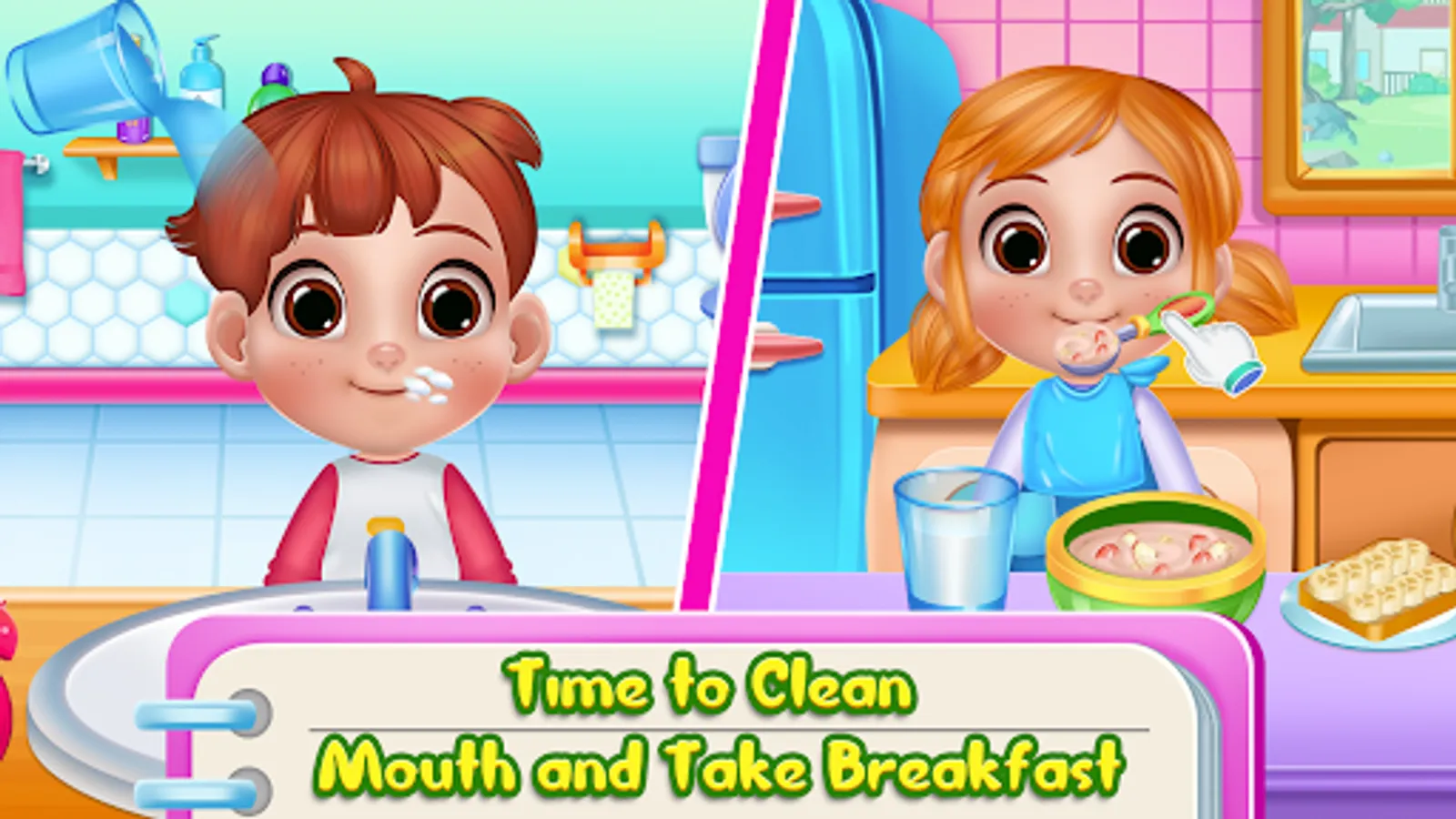 Enjoy delicious healthy breakfast and then get ready to go to school.