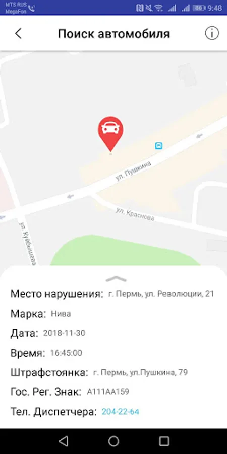 Download the application, on the main screen, dial the number of your car, click the "Search" button, and on the next screen you will receive comprehensive information. You will be able to find out at what time your car was evacuated, what car park it is now at, find out the reason for the evacuation and contact the dispatcher.