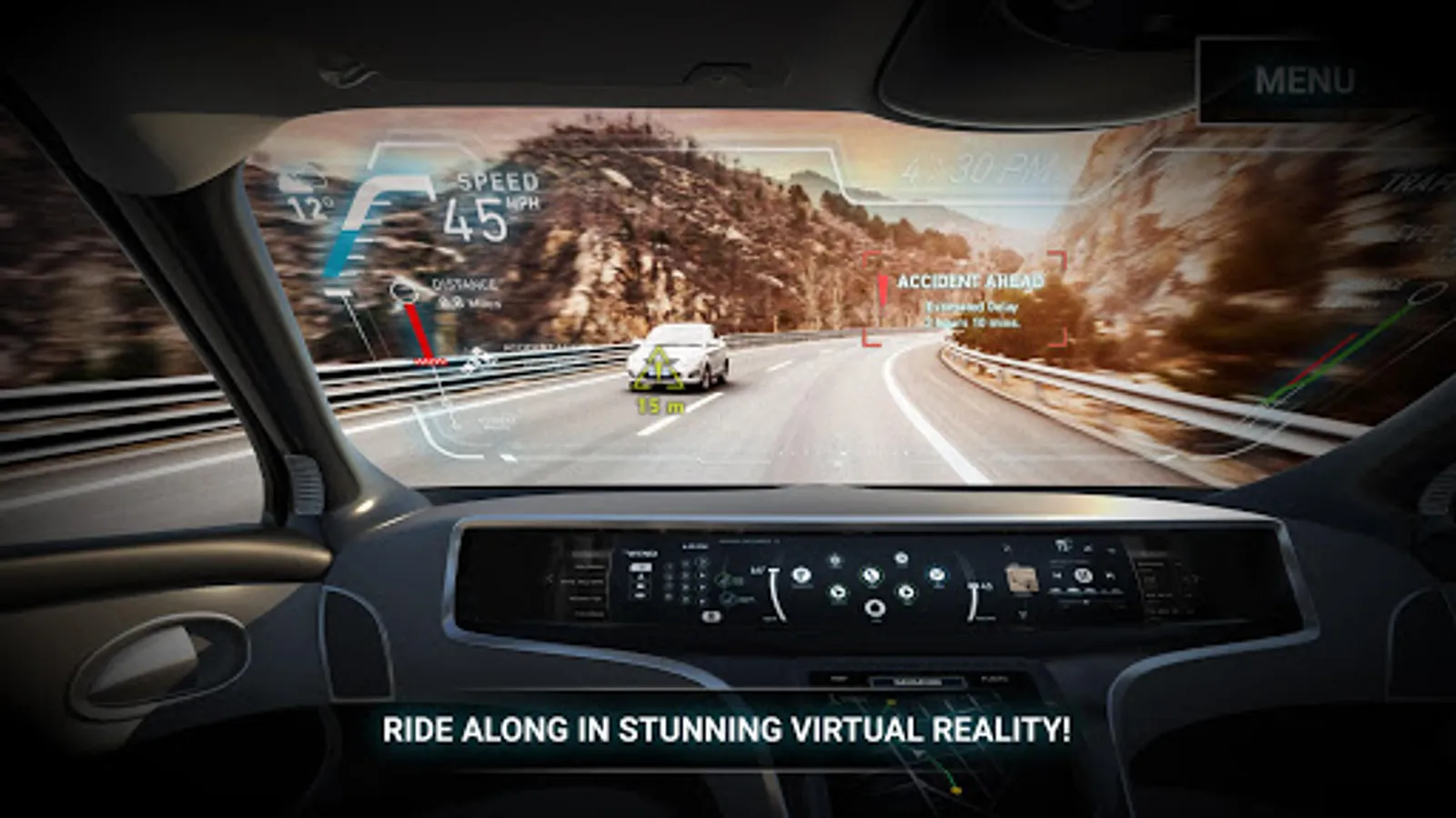 Experience the future of self driving cars by using the immersive technology of virtual reality with the Wind River app!