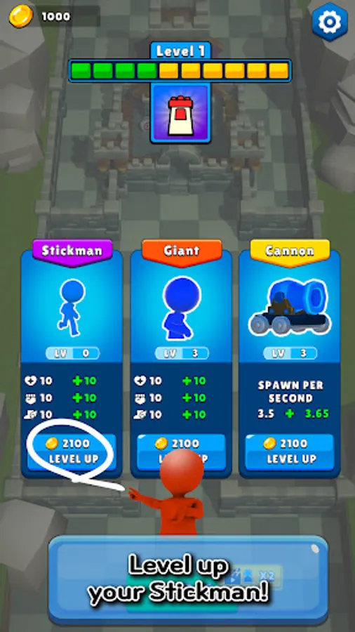 Level up Stickman to upgrade your physical strength, attack, and speed.