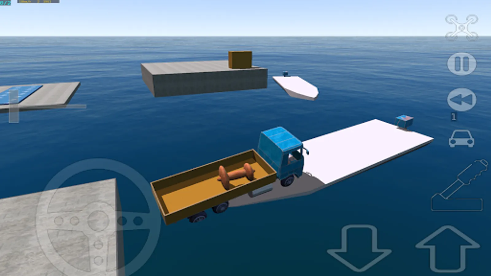 Some tracks include heavy machines, boats, or segmented trucks, which need to be parked into tight spots at the end of the course.