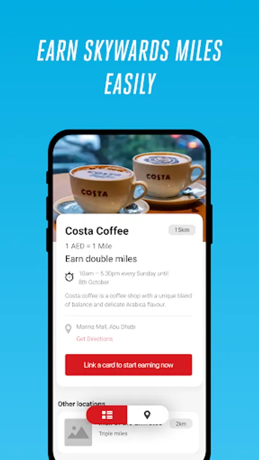 Earn Skywards Miles automatically when you shop, dine, play and unwind in the UAE. Simply download the Skywards Everyday app, log in, and link a payment card to your profile and you’re ready to earn Skywards Miles. Choose from hundreds of partners throughout the UAE.