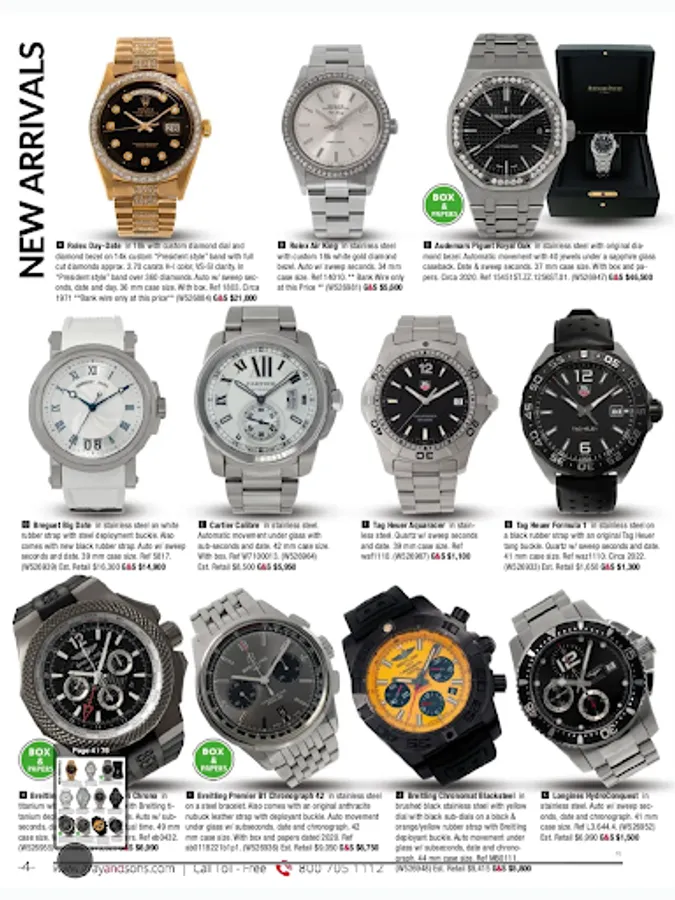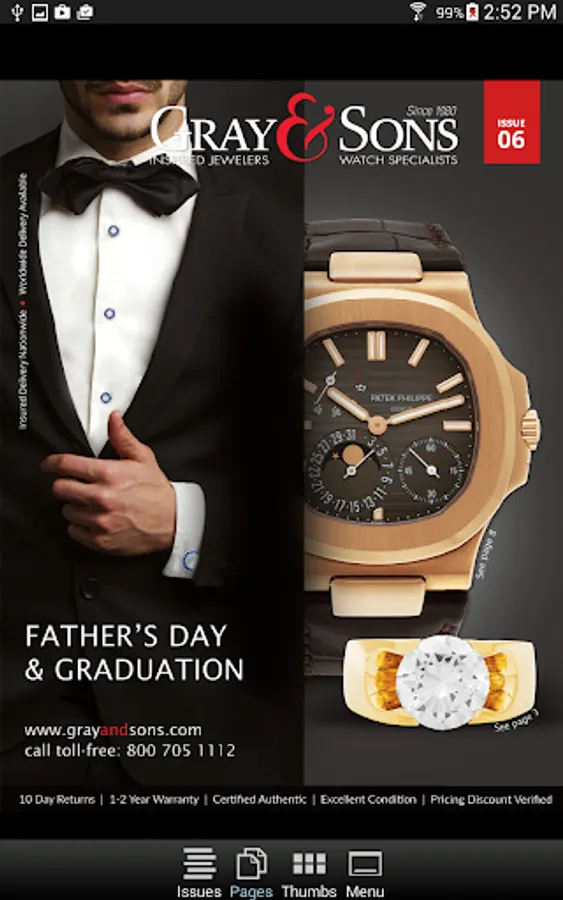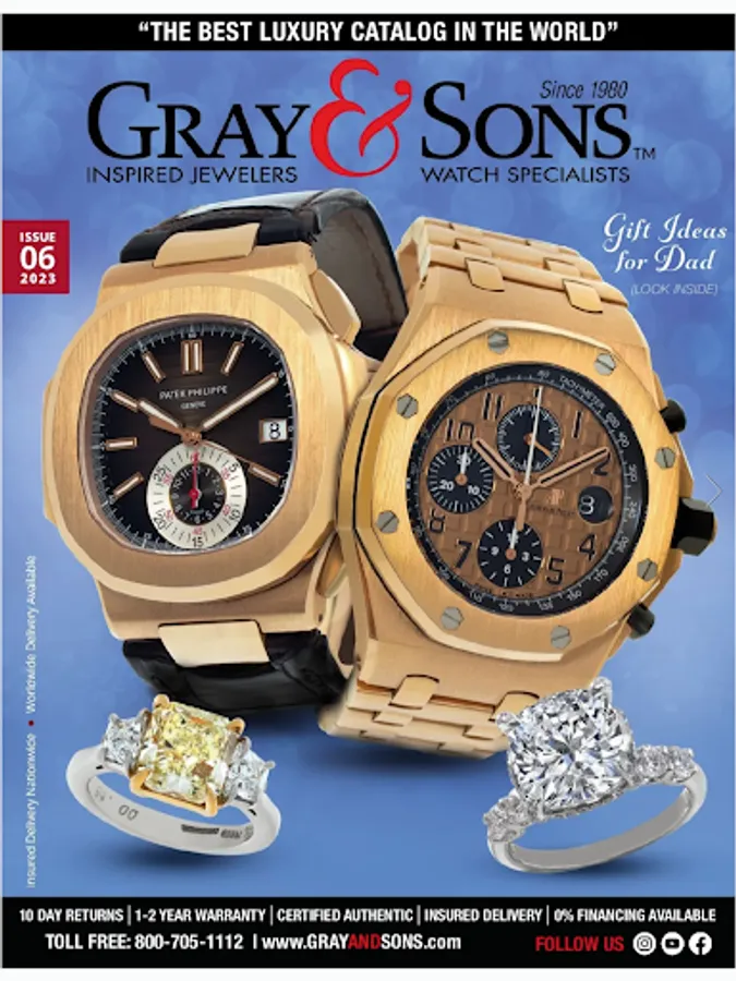 Browse the Gray & Sons Catalog Digital Edition. Gray & Sons Jewelers has specialized in buying, selling and repairing fine pre-owned watches and estate jewelry since 1980. This catalog offers the best watch brands in the world for a substantial discount (up to 70% off new retail list price). Names like Rolex, Cartier, Patek Philippe, Audermars Piguet, Omega, IWC and more. Also fine gold and platinum jewelry (both modern and vintage) and GIA certified diamonds. Get the best for less – much less! This is the only monthly catalog of its kind!