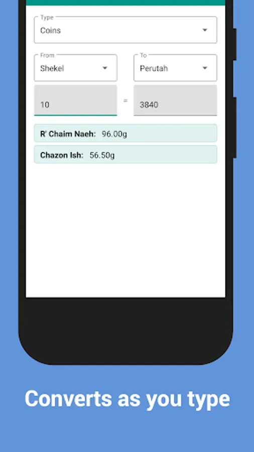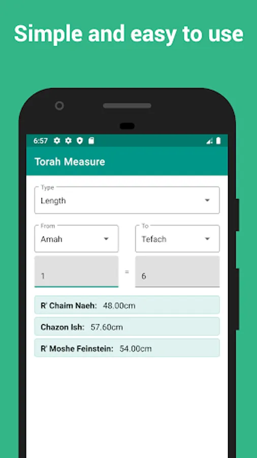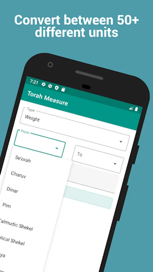 You don't need to get frazzled by measurements anymore! Using Torah Measure, you can convert 50+ types of units and gain an understanding of the relationship between them. You can view their values in Metric or Imperial units.