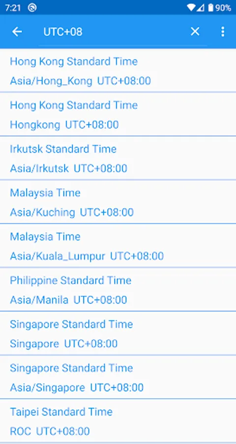 Find the time zone in the list and select the time zone. It will automatically calculate the current time of that time zone.