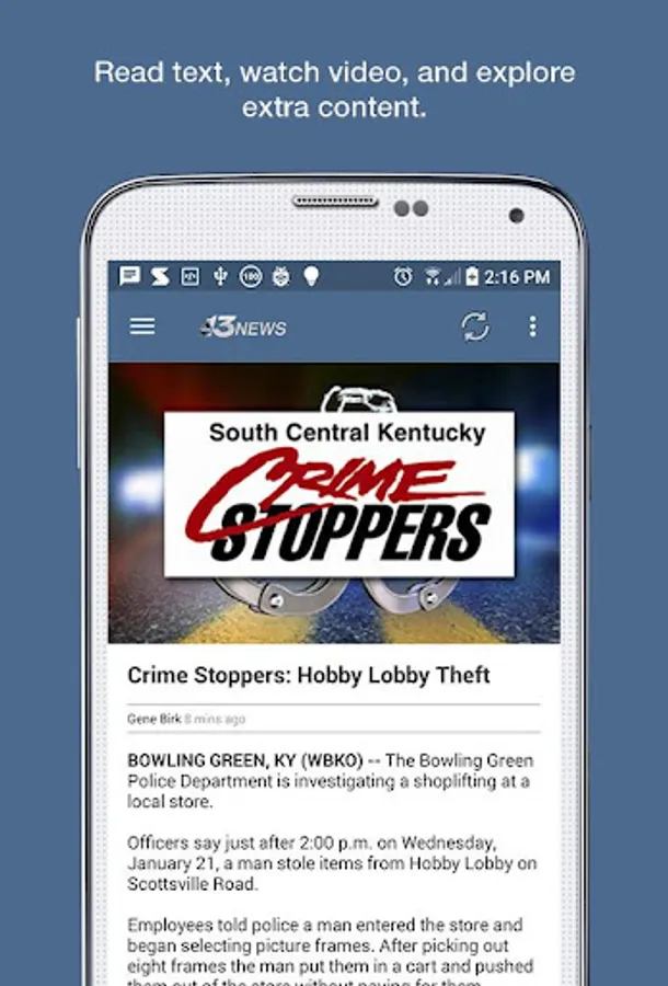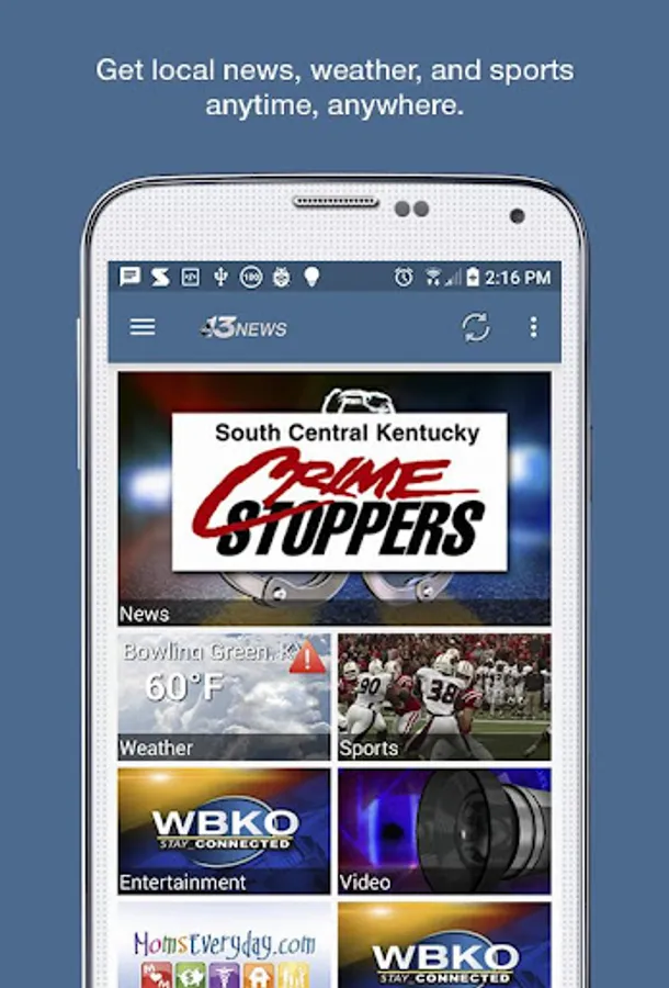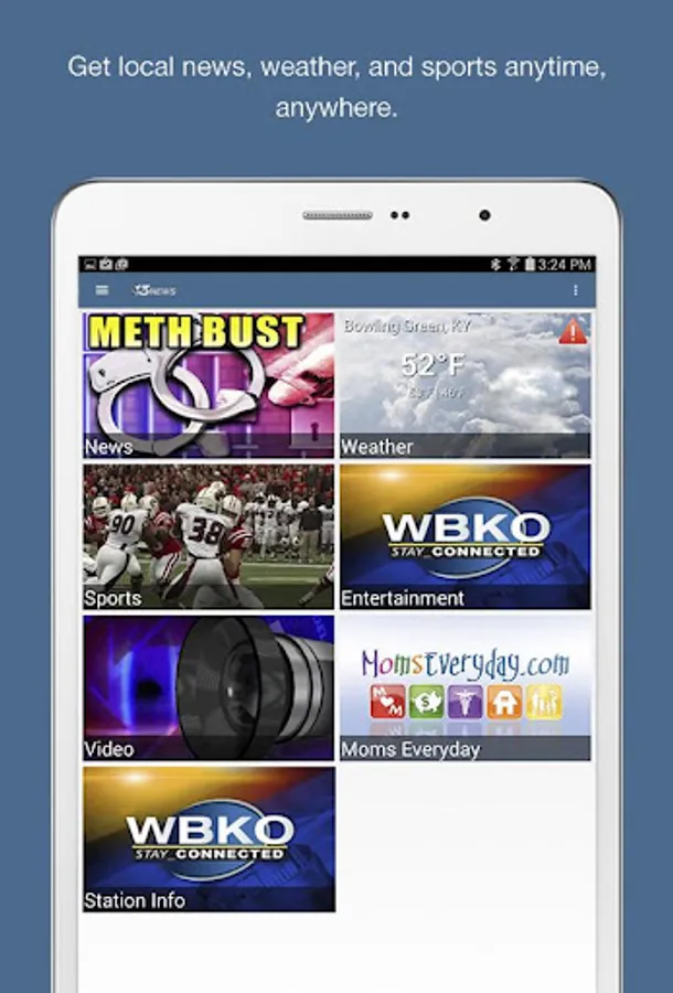 It’s the Bowling Green-area news experience you’ve waited for! Catch news, sports, and weather anywhere with the WBKO app for Android. Share content by email, text, Twitter or Facebook. Whether it’s severe weather or sports scores, the WBKO app for Android keeps you in-the-know while you’re on-the-go!