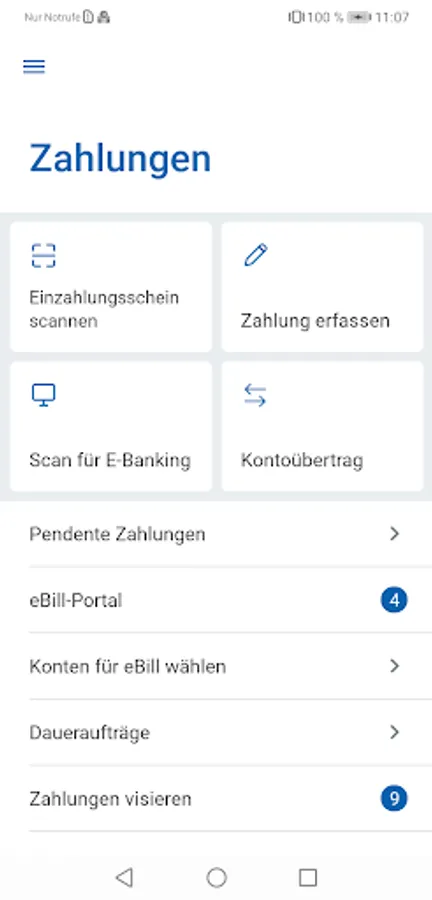 - 'Scan for E-Banking' as a payment slip scanner directly in E-Banking