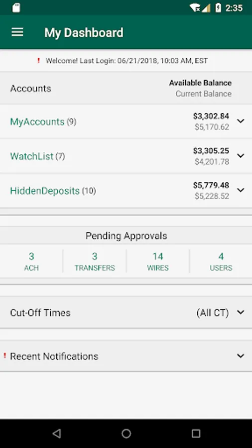 GRBmobile Treasury supports all account types including checking, savings, time deposits, money market accounts, loans, and lines of credit. GRBmobile Treasury is a FREE service – there is no bank fee, but connectivity and usage fees may apply.