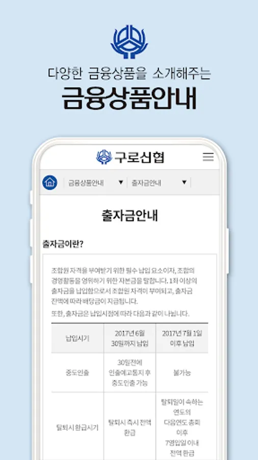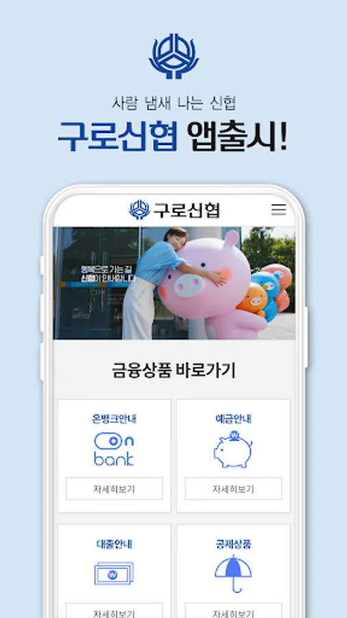 The Guro Credit Union app provides information related to the Guro Credit Union, such as information on financial services such as savings and savings services, loan services, affiliate cards, deductions, and branch locations, and allows you to conveniently receive announcements and event notifications.