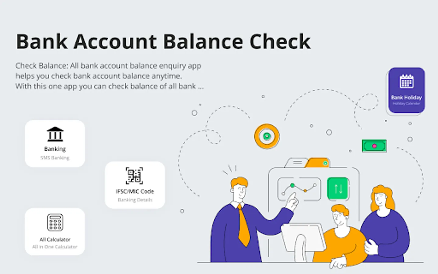 All bank account balance enquiry app helps you check your bank account balance anytime.