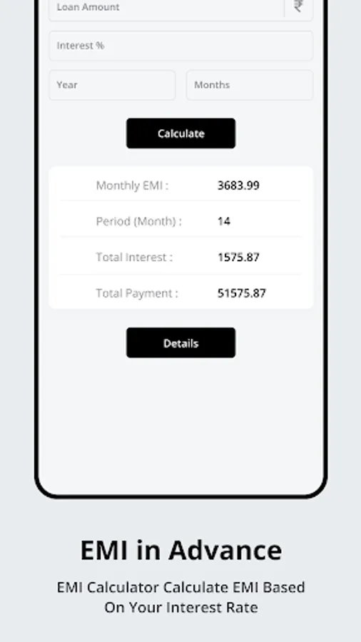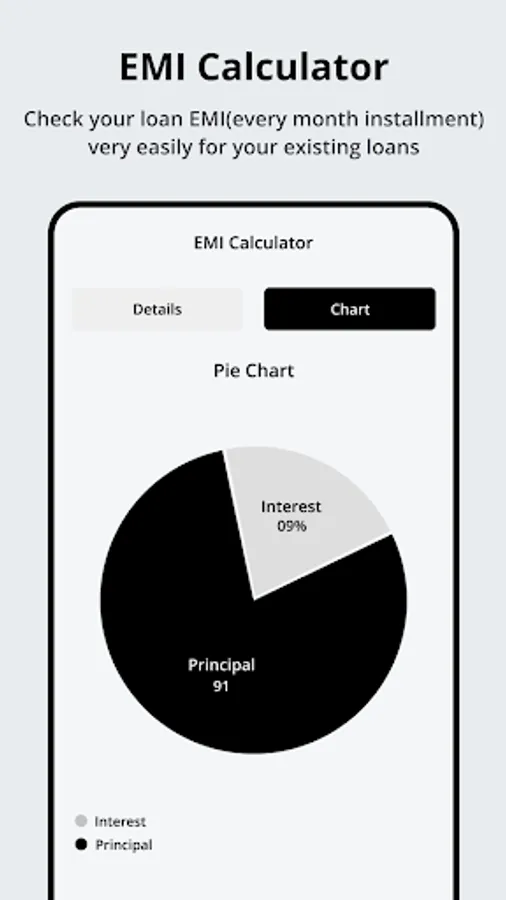 Check your loan EMI(Every Month Installment) very easily for your existing loans or for new loans within this app.
