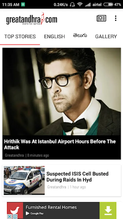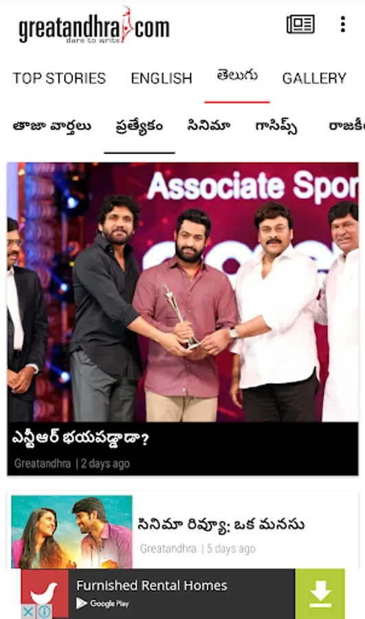 The GreatAndhra Android brings you latest stories and galleries from the state of Andhra Pradesh. Our journalists report on Andhra Politics, Tollywood, Bollywood, Business and National news.