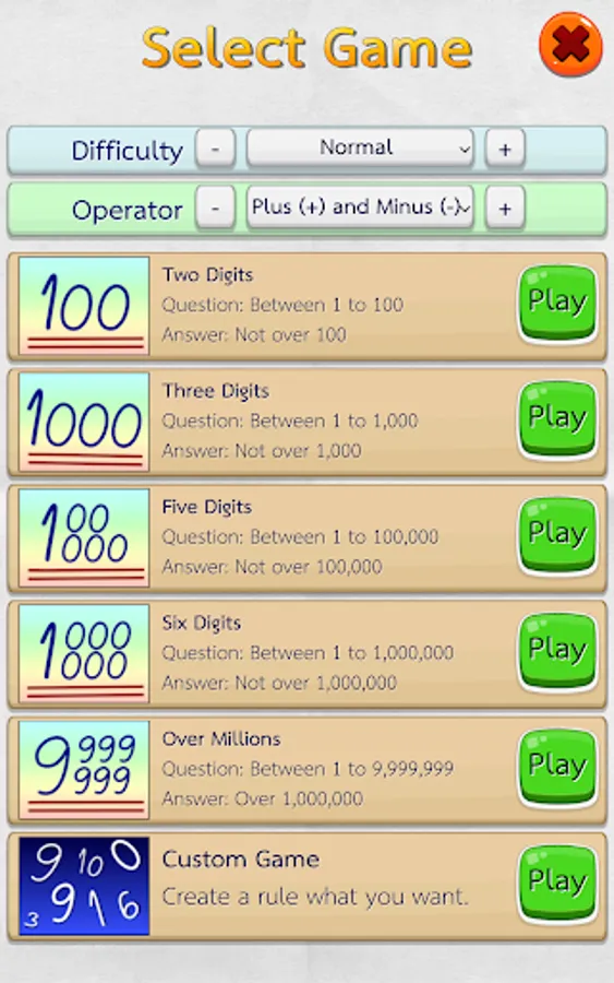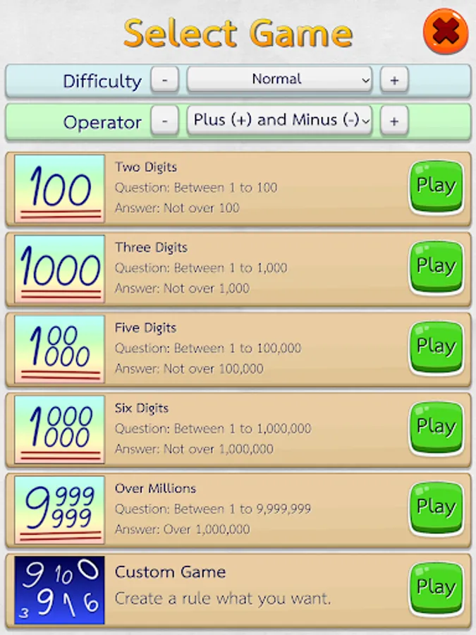 • You can choose difficulty levels