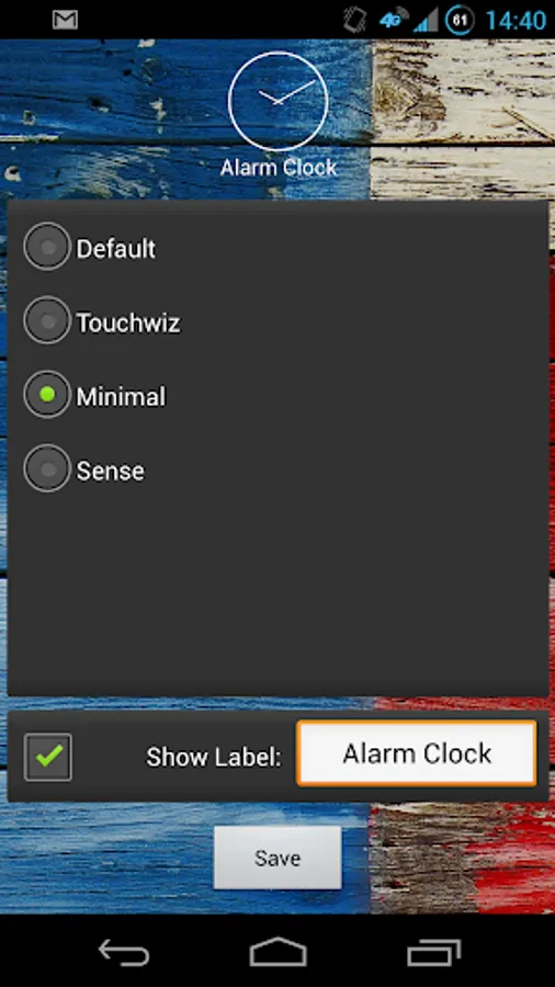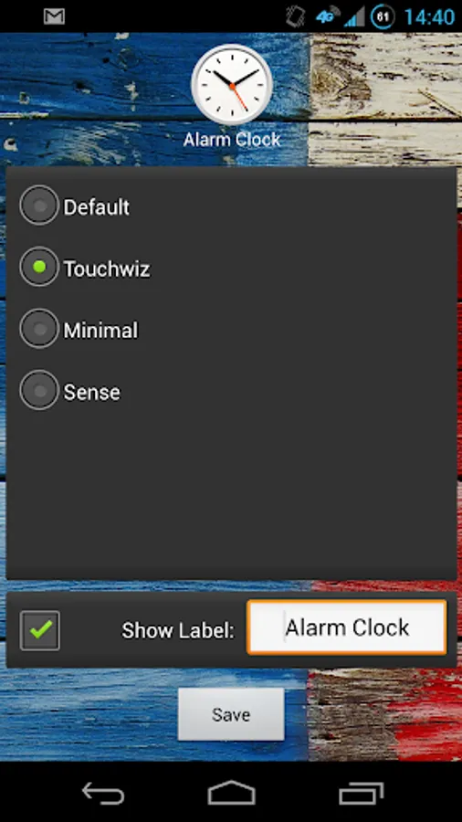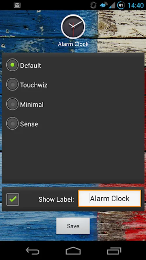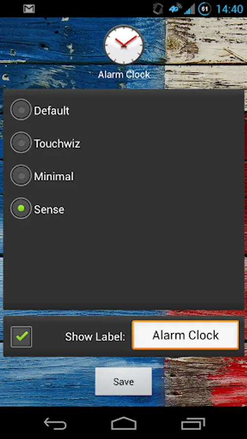 4. Configure it to your liking (Design, Label on/off) and tap on "Save"