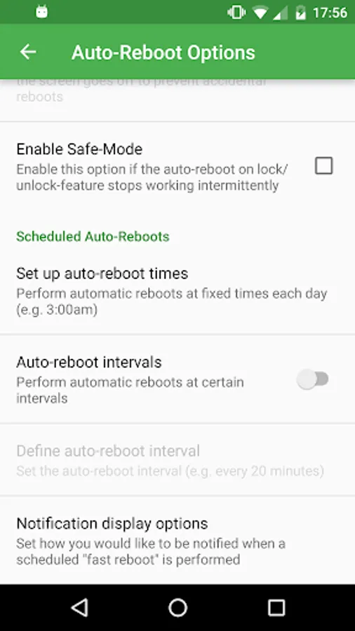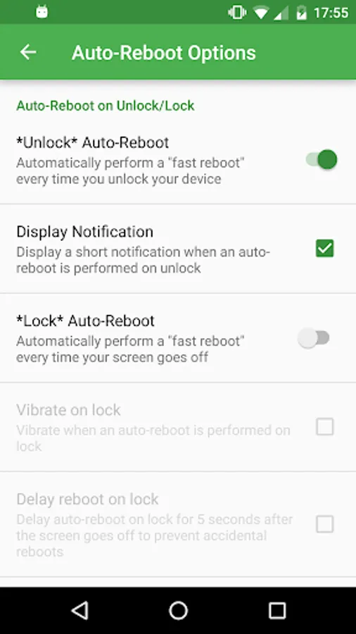 - Option to automatically fast reboot when you unlock your device (from standby)