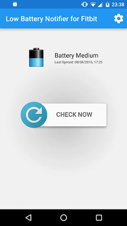 Low Battery Notifier for Fitbit® alerts you when your tracker's battery gets low: The app periodically checks your tracker's battery level in the background (once a day), and puts an alert in your notification bar when the battery is nearly empty.