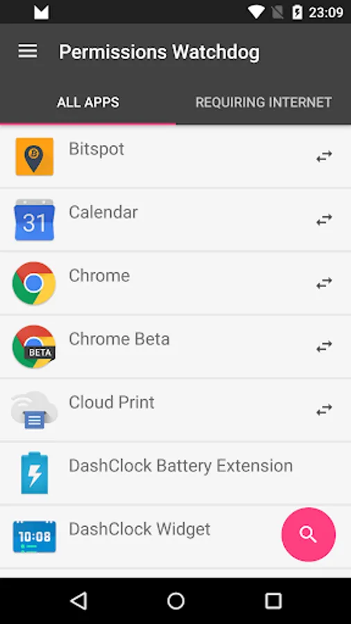 Google Play will no longer warn you if an app developed for Android M requires the INTERNET permission. However, it's sometimes nice to know if a calculator or flashlight app requests the INTERNET permission. Permissions Watchdog helps you to determine if an app requires the INTERNET permission.