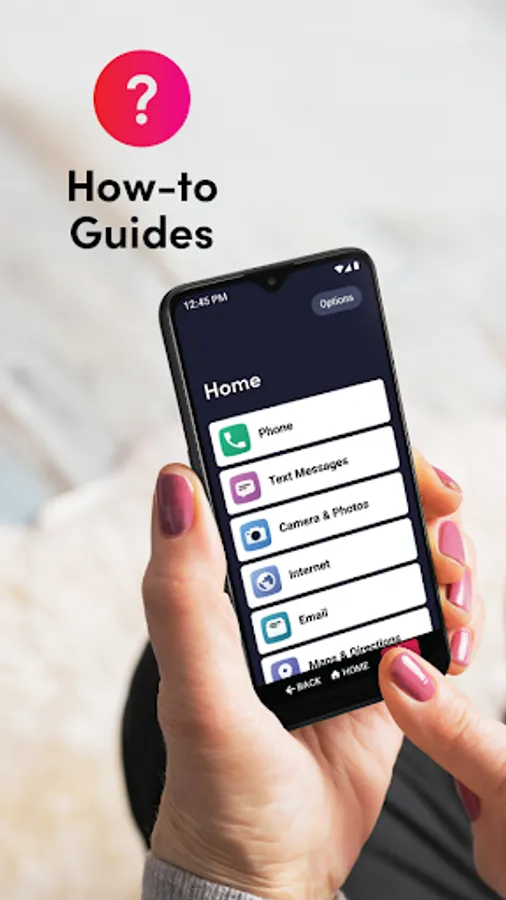 The Jitterbug Smart3 is designed to be easy to use from the moment you turn it on. Everything you want to do, from calling and video chatting with family, to sharing photos and getting directions, is organized in a single list on one screen with large, legible letters. Voice typing makes writing emails and texts effortless. And there are even how-to guides right on the phone if you ever need help learning new features.